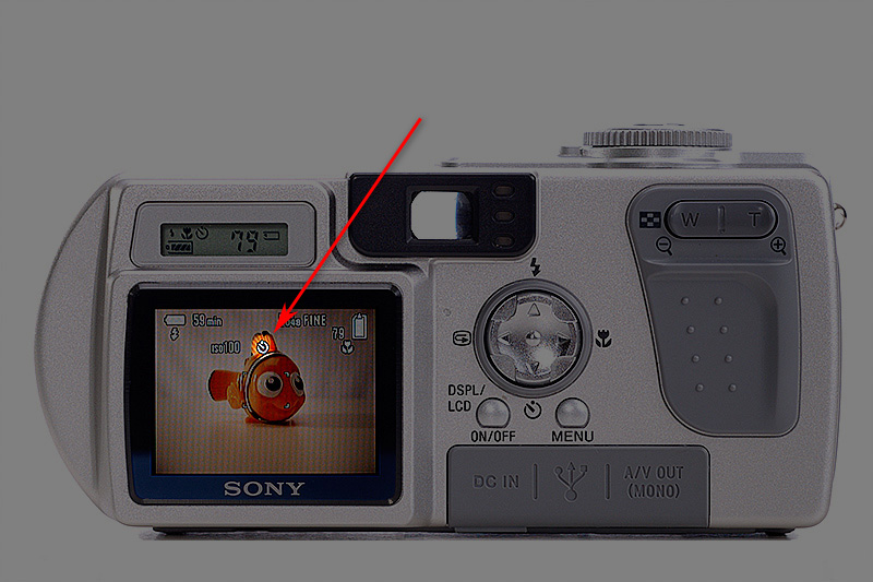 self-timer mode. A round clock icon shows up on the LCD indicating